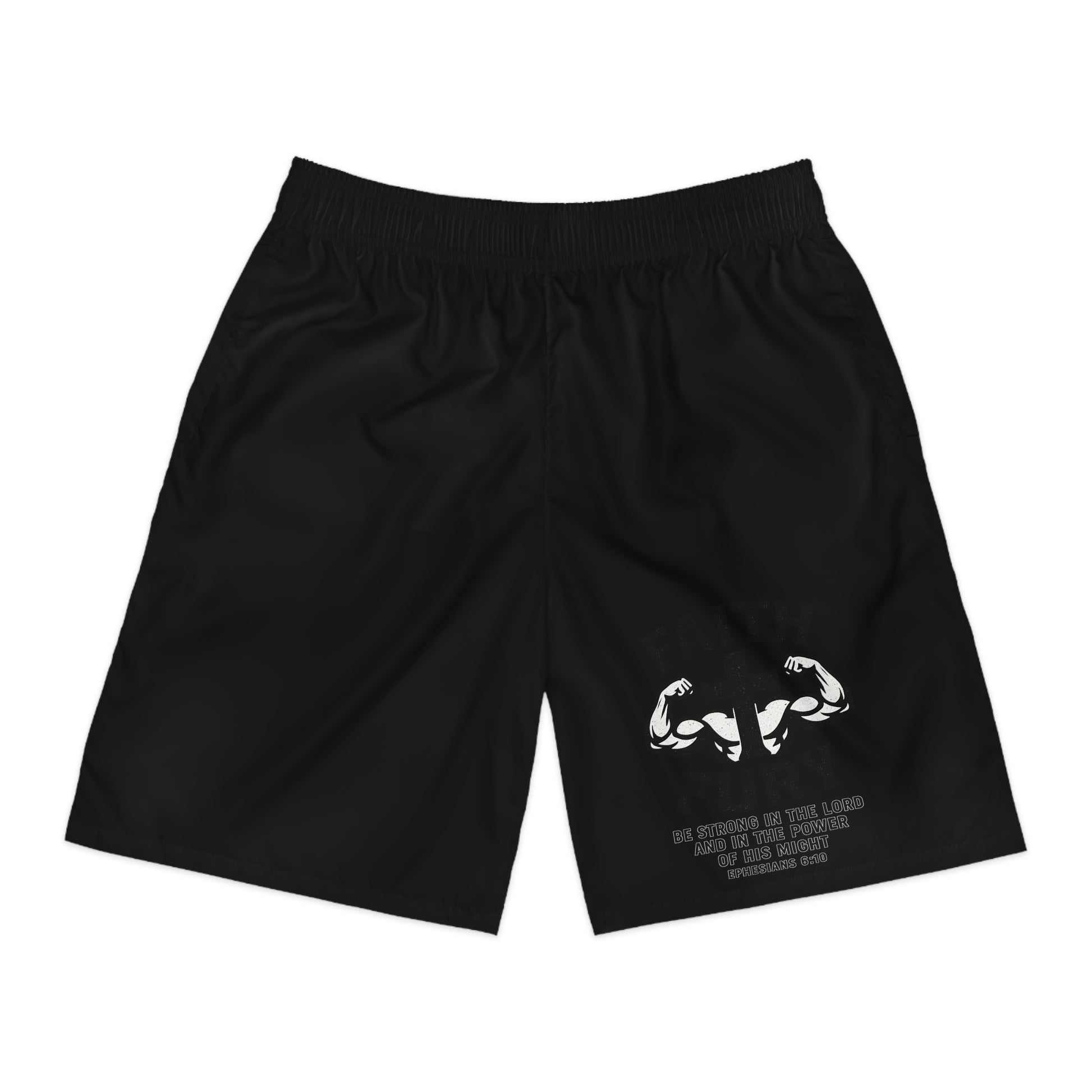 Lightweight, breathable jogger shorts built for movement and everyday wear. These shorts sit loose for easy mobility, with a soft elastic waistband and interior drawstring that stay comfortable during warm-up sets or weekend errands. The all-over black print keeps the look minimal while bold, white graphic arms add a touch of grit on the front thigh and a small, characterful patch sits over the back pocket. Quick-drying, moisture-wicking polyester means sweat won’t weigh you down. Practical details — two side-slit pockets plus a velcro back pocket and the option to customize pocket interiors — make these shorts as functional as they are sharp. Wear them for training, lounging, or heading out when you want something low-profile with an athletic edge.